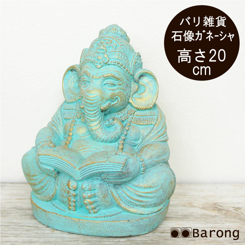 ■【送料無料!】バリ島石像 ガネーシャ 読書 高さ20cm / アジアンインテリア エクステリア 庭 ガーデニング アジアン家具 アジアン雑貨 石 セメント 神様 ヒンズー オブジェ バリ島
