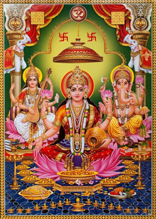 ■インドの神様ラクシュミー/ガネーシャ/サラスヴァティ—神お守りカード×1枚[002]India God【Lax/Gane/Sara】Small Card (Charm)【美】【富】【豊穣】【幸運】【純粋】【商業】【繁栄】【成功】【芸術】【学問】【知】