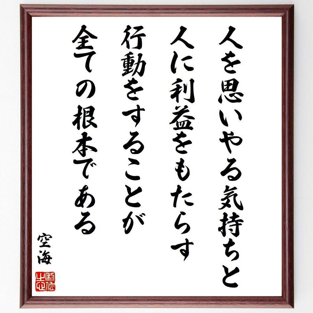 ■空海の名言「人を思いやる気持ちと、人に利益をもたらす行動をすることが、全ての根本である」手書き書道色紙額/受注後の毛筆直筆(思いやり 利益 行動 空海 名言 人間関係 倫理 仏教 教え 共感 空海 名言 格言 座右の銘 プレゼント 贈り物 お祝い~