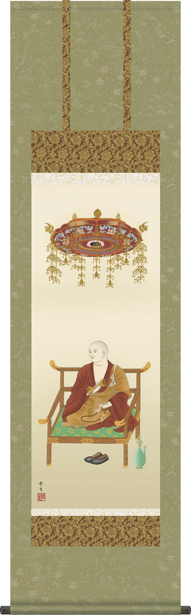 宗旨を超えて慕われてきた空海が優しく微笑む真言宗の開祖であり、四国八十八か所霊場を整備再興された、宗旨を超えて慕われてきた空海が優しく微笑む感動の作品です。 ●幅44.5×高さ164cm ●本紙・・・新絹本 ●軸先・・・陶器 ●化粧箱収納 ●表装品質十年間保証付き 日本画構図の開発と国内生産品にこだわった製品です! 作品は特殊印刷に手彩色仕上げとなっています。 ※受注制作・取寄せのため1週間程度(...