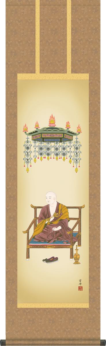 ■仏画掛け軸-弘法大師/清水雲峰(尺三)床の間 有難い 掛軸 空海 高野山 真言宗 高品質 高級 日本製 壁飾り[送料無料]