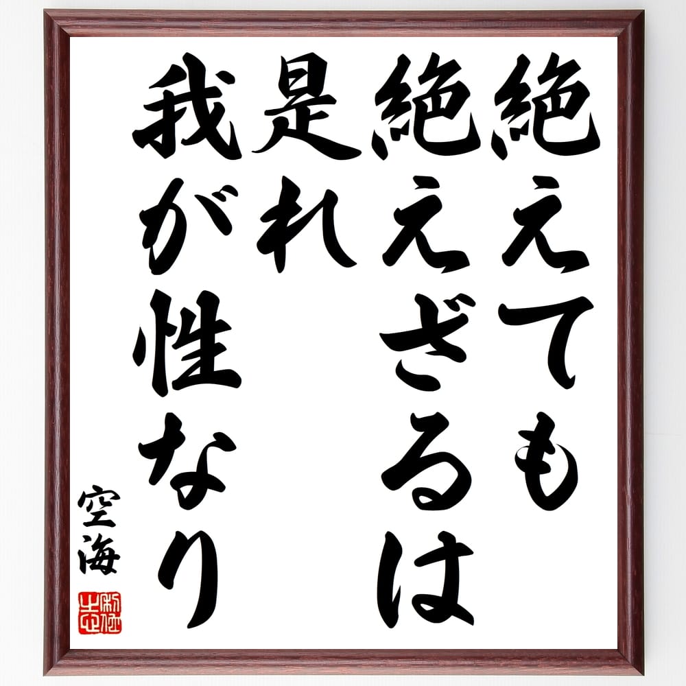 ■空海の名言「絶えても絶えざるは是れ我が性なり」手書き書道色紙額/受注後の毛筆直筆(永遠 存在 空海 名言 自己認識 変化 不変 哲学 生と死 精神性 空海 名言 格言 座右の銘 プレゼント 贈り物 お祝い 偉人 グッズ 心に響く 短い アニメ~