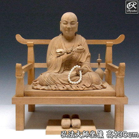 ■木彫り 仏像 弘法大師 空海像 高さ30cm 楠製 [Ryusho]