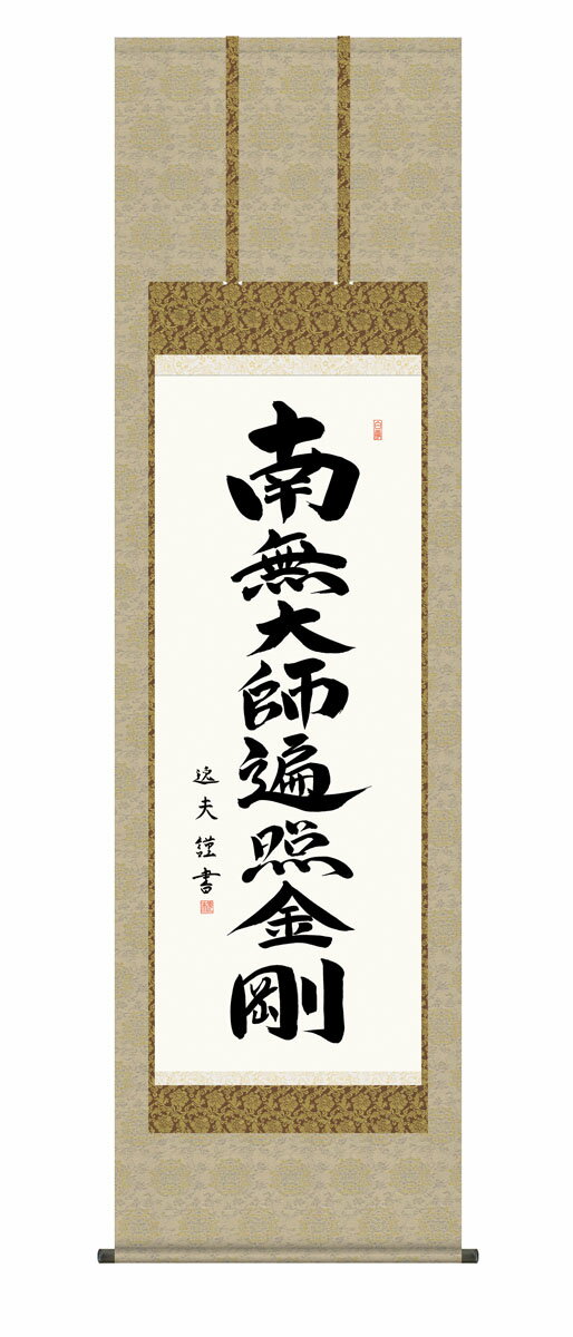 ■法要飾り 掛軸 弘法大師 北山歩生 尺三 仏間 床の間 空海 真言宗 ‎遍照金剛 モダン 小振り 掛軸[送料無料] ギフト 贈答[幅44.5cm×高さ164cm]