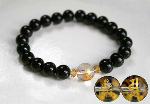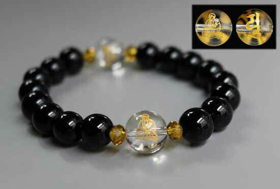 ■【ネコポス】【送料無料】お守りパワーストーン 空海ブレスレット 彫刻水晶2個 M/L ブレスレット パワーストーン 開運 パワーストーンブレスレット 高野山 弘法大師 空海 オニキスブレスレット 天然石 梵字 オニキス お守り 守護 魔除け 邪気祓い 厄除け 成功 夫婦の幸福