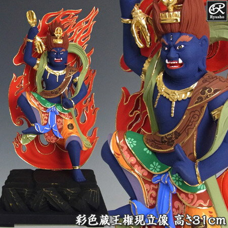 木彫り 仏像 彩色蔵王権現 立像 高さ31cm 桧製 [Ryusho]