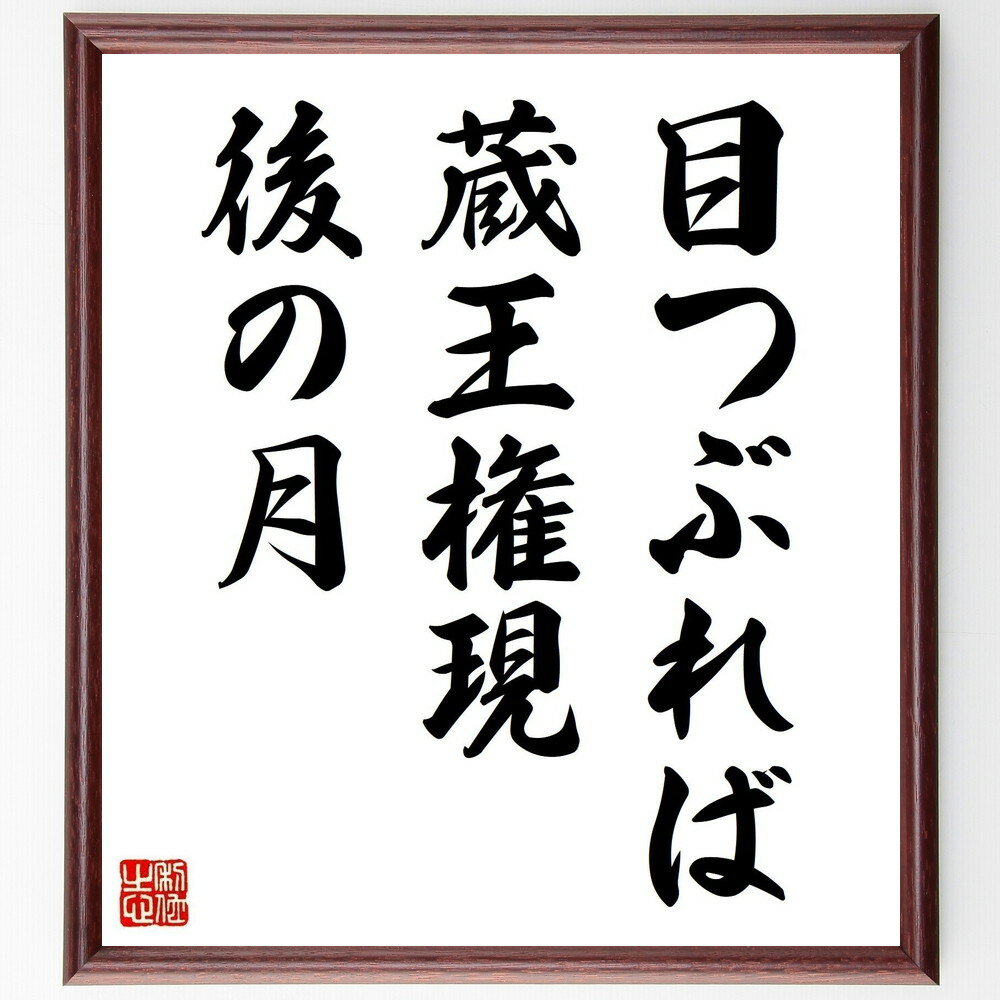 ■名言「目つぶれば、蔵王権現、後の月」手書き書道色紙額/受注後の毛筆直筆(阿波野青畝 目つぶる 蔵王権現 名言 月 自然 信仰 俳句 詩 感性 阿波野青畝 名言 格言 座右の銘 プレゼント 贈り物 お祝い 偉人 グッズ 心に響く 短い アニメ ~
